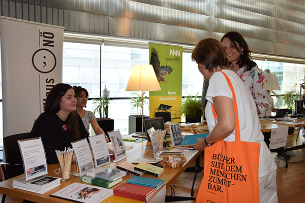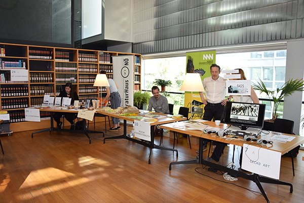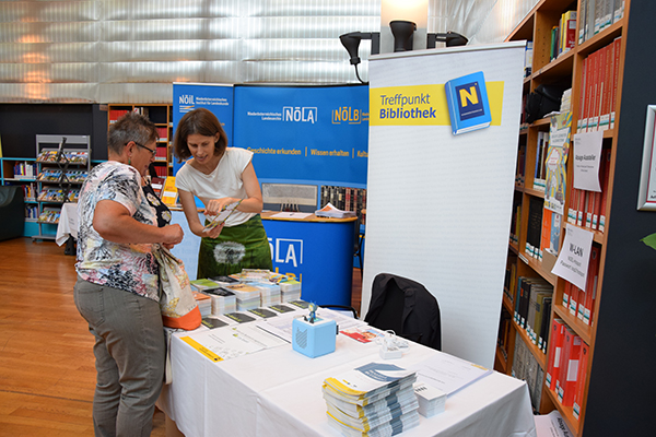 Am Freitag, den 14. Juni 2019 verwandelte sich die NÖ Landesbibliothek in ein Messezentrum. Zum ersten Mal wurde die Fachmesse „biblio aktiv“ veranstaltet, die allen Bibliothekarinnen und Bibliothekaren die Möglichkeit bot, sich mit Anbietern und untereinander zu vernetzen. Neben 31 Ausstellerinnen und Ausstellern hatten die Bibliothekarinnen und Bibliothekare die Möglichkeit sich bei Kurzvorträgen ein genaues Bild über die Angebote zu machen. Auch die Vernetzung kam nicht zu kurz – in Kooperation mit „So schmeckt Niederösterreich“ haben heimische Gastronomen für den kulinarischen Teil des Tages gesorgt.
